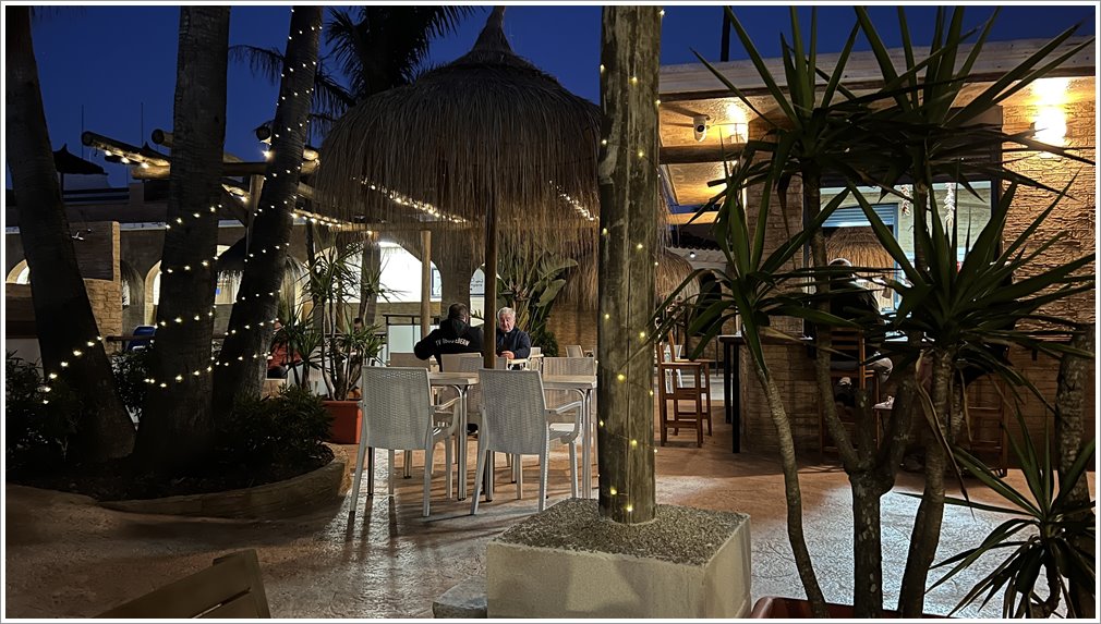 Das Meer ist heute sehr aufgewühlt, Wellen fast wie am Atlantik nach dem gestrigen Regentag. Hin und wieder kommt die Sonne schon wieder heraus, sodass es sich nicht so kalt anfühlt, wie es das Thermometer sagt, und an der Poolbar sitzen auch schon wieder einige Camper bei einer Cerveza.